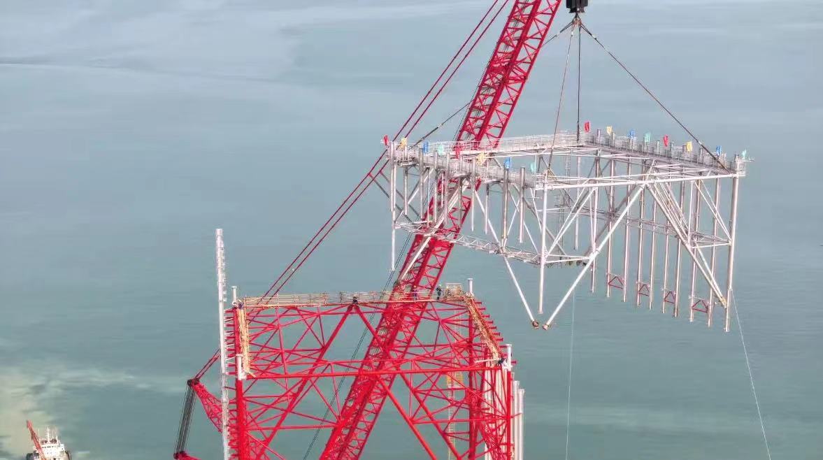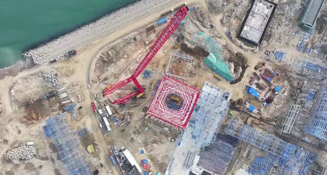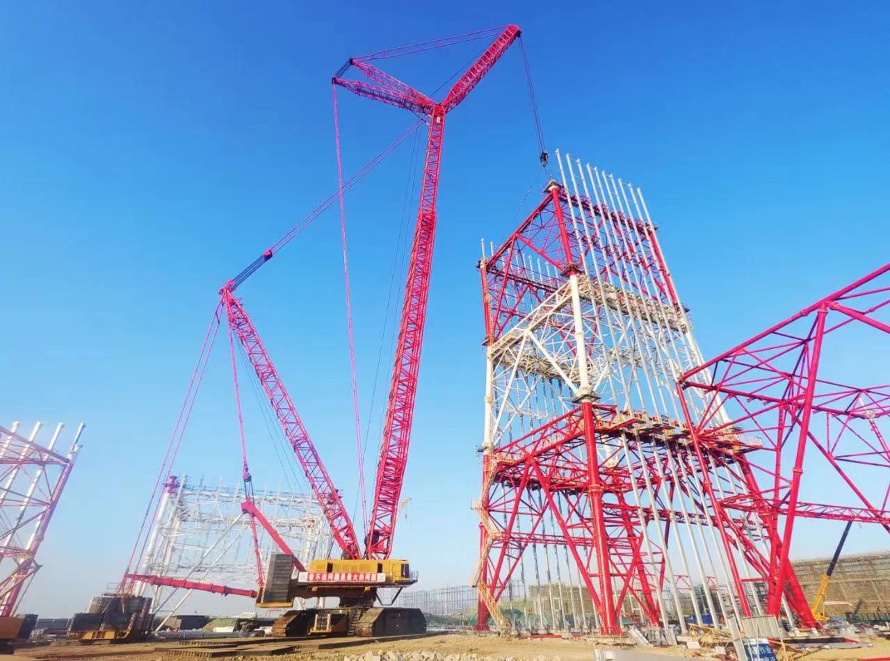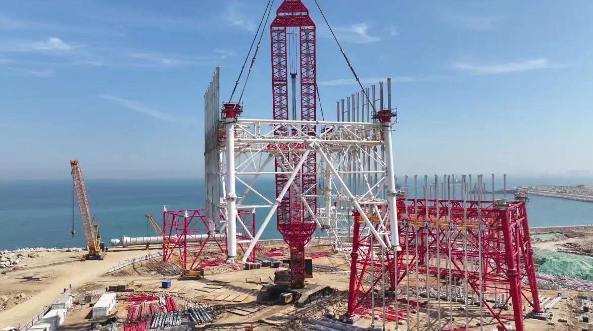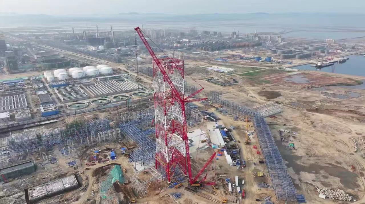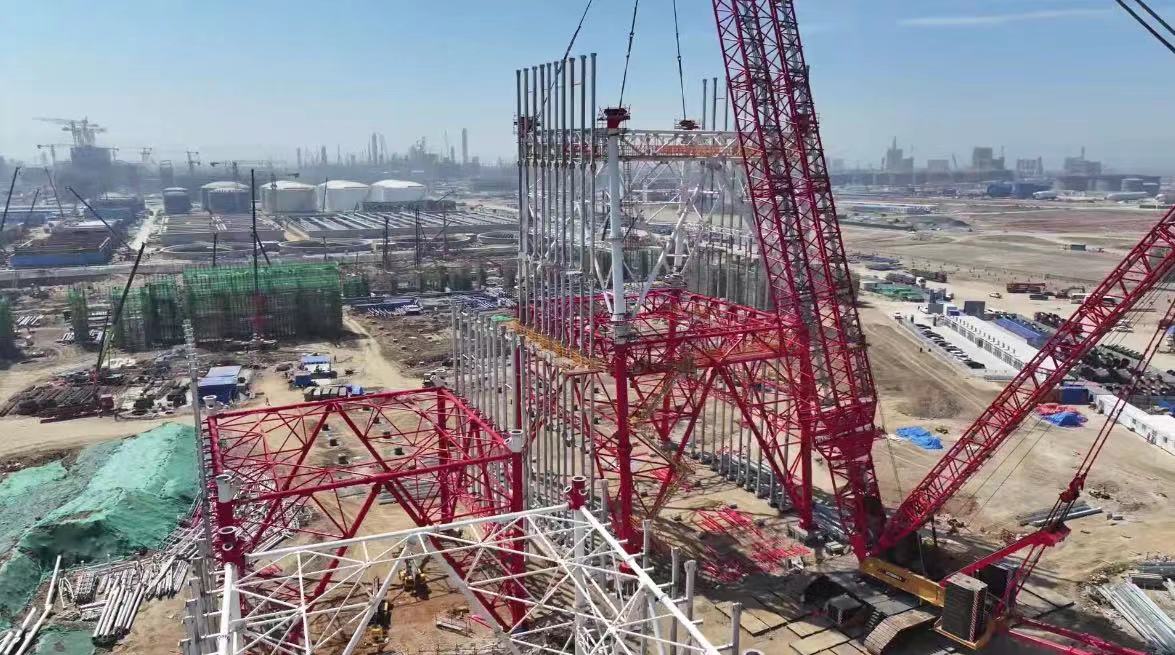 山(shān)东海湾吊裝(zhuang)工(gong)程(cheng)股份有(yǒu)限(xian)公(gōng)司2000吨级履带起重(zhong)機(jī)SCC20000A,在(zai)裕龙石化炼化一(yi)體(ti)化項(xiang)目(mu)(一(yi)期)成(cheng)功完成(cheng)火炬塔架封顶。