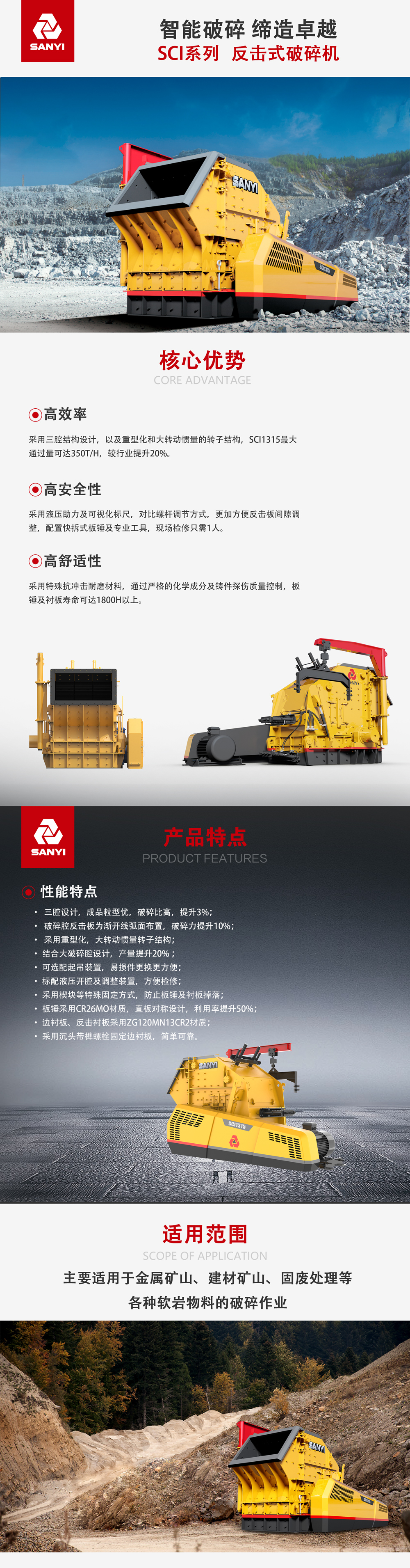 高(gao)效率:采用(yong)三腔结构設(shè)計(ji),以(yi)及(ji)重(zhong)型化咊(he)大(da)转動(dòng)惯量的(de)转子(zi)结构,SCI1315最大(da)通(tong)過(guo)量可(kě)达350t/h,较行业提升20%。