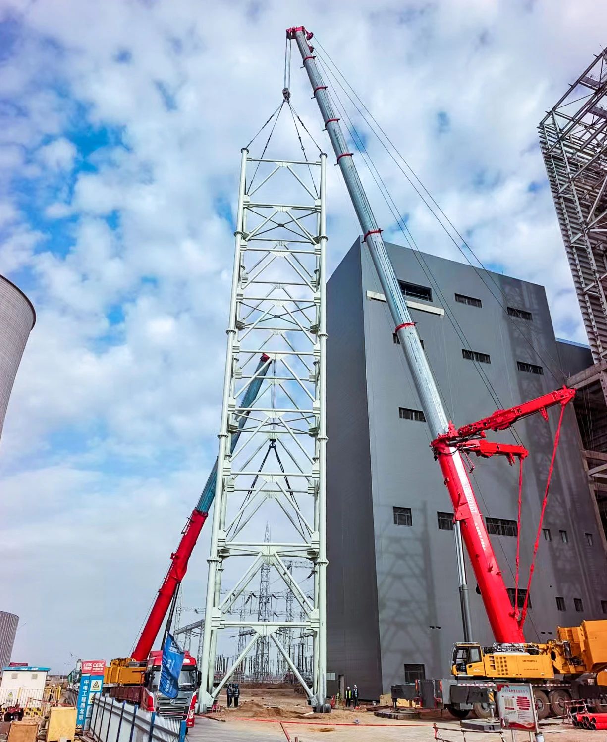 >>> 單(dan)機(jī)吊裝(zhuang),独当一(yi)面 在(zai)甘肃酒泉市(shi)瓜州常乐電(dian)廠(chǎng),采用(yong)68.2米主(zhu)臂,93吨配(pei)重(zhong),将重(zhong)达82吨鋼(gang)构轻松吊裝(zhuang)到(dao)指定位置。