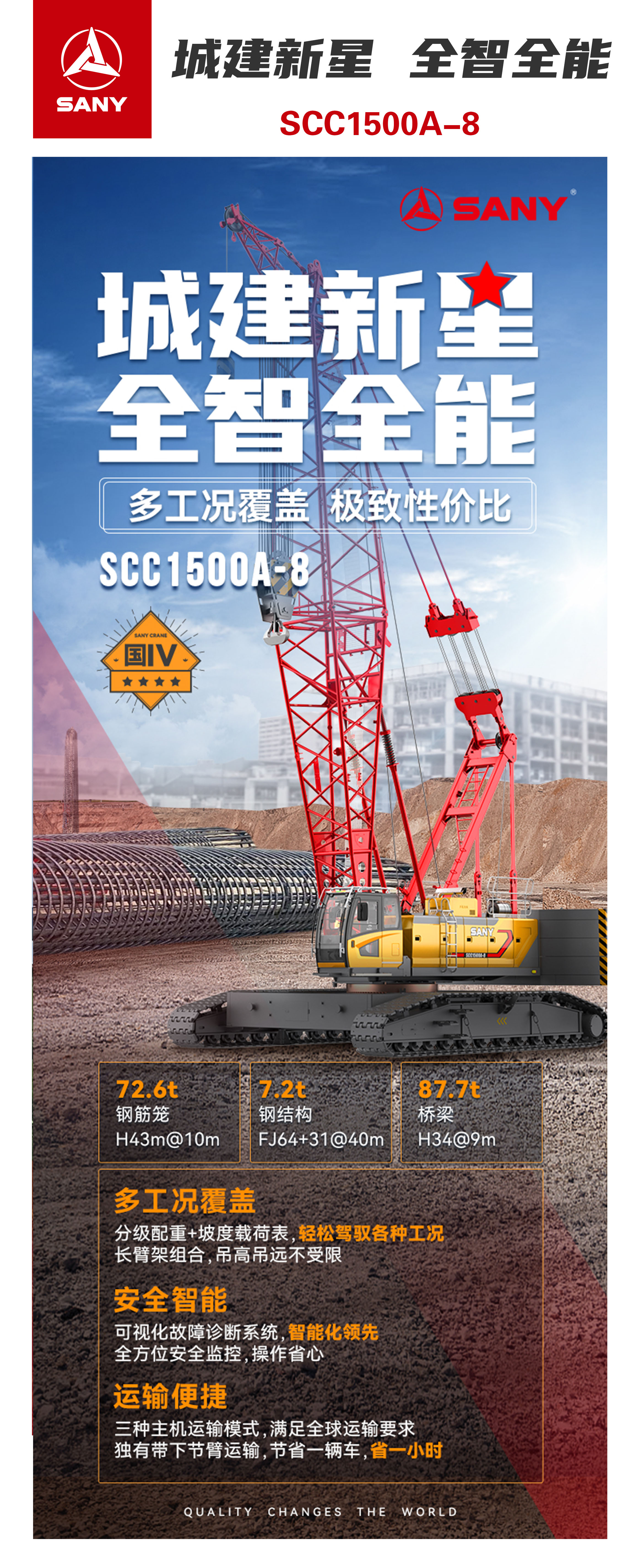 市(shi)政公(gōng)用(yong) SCC1500A-8桁架臂履带起重(zhong)機(jī)